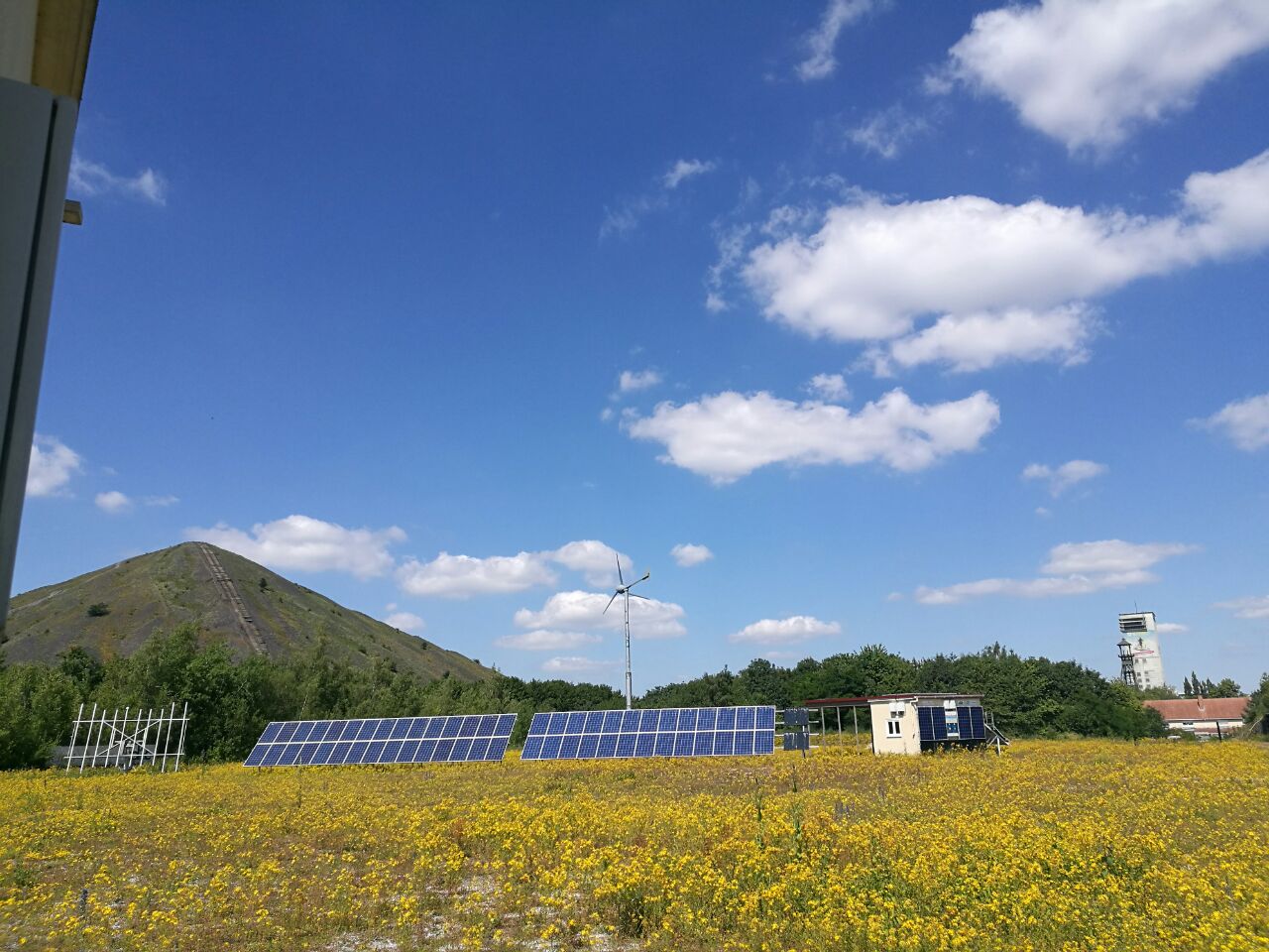 Posteriormente hemos visitado el centro de investigación de desarrollo sostenible, ubicado en el antiguo acceso a una de las 8 minas, un recinto que aún conserva la torre que descendía las jaulas a 1000 metros de profundidad. Por último, hemos recorrido las instalaciones técnicas CD2E donde se encuentra la estación experimental de energía solar.