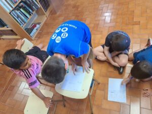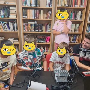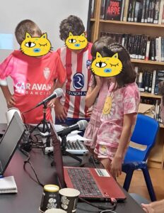 El miércoles 3 de julio de 2024 disfrutamos de un taller de radio y podcast en la Biblioteca El Olmo de Villlafranca de Ebro. La actividad se llenó con 15 niñas y niños de entre 8 y 12 años, a quienes tuve la emoción y el placer de acompañar en su primera creación radiofónica. Aunque algunos hacían radio por primera vez, todos fueron capaces de aportar en la realización del guion, las locuciones y la selección de los contenidos en la escaleta y el nombre común del podcast, «Voces del Pueblo». ¡Lo hicieron fenomenal y demostraron el enorme potencial de la oralidad y las ganas que tenían de continuar!